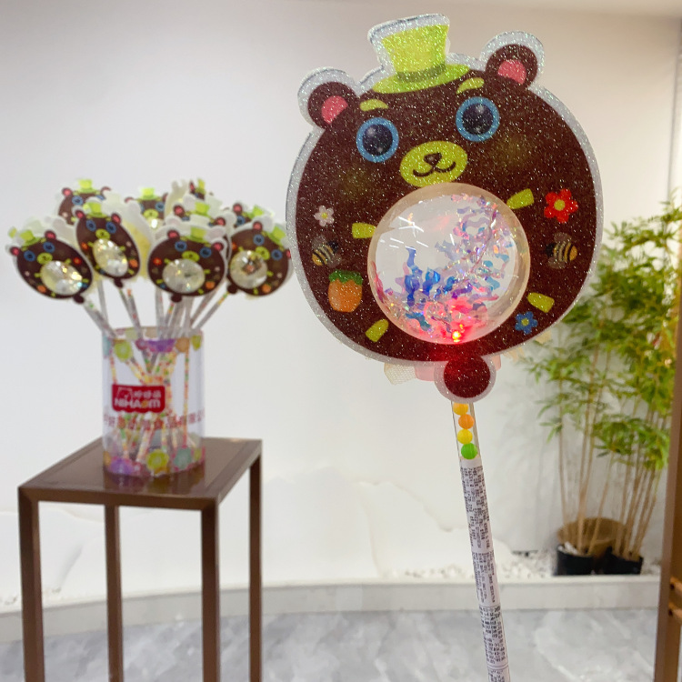 新商品のネット赤閃光漫画の帽子熊波球星空球魔法棒子供がキャンディーを持って光るおもちゃ