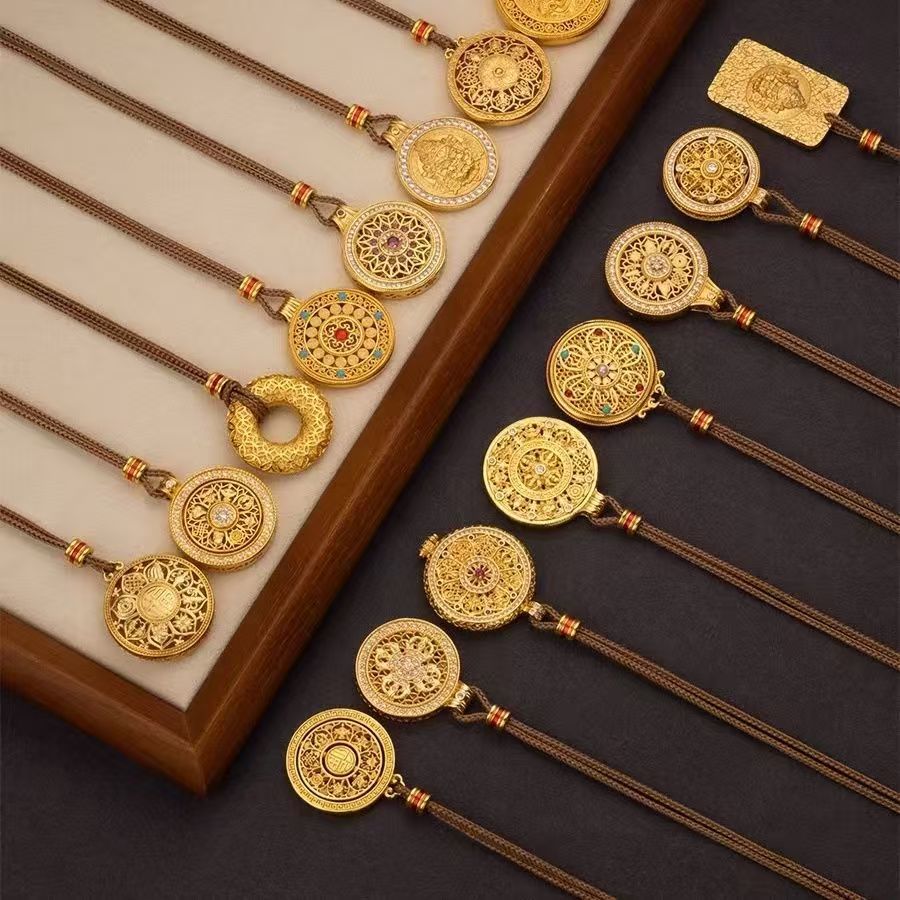 2025新型ネットレッド八宝コンパス沙金長ネックレス男女高級感ペンダントセーターチェーン古法透かし彫り