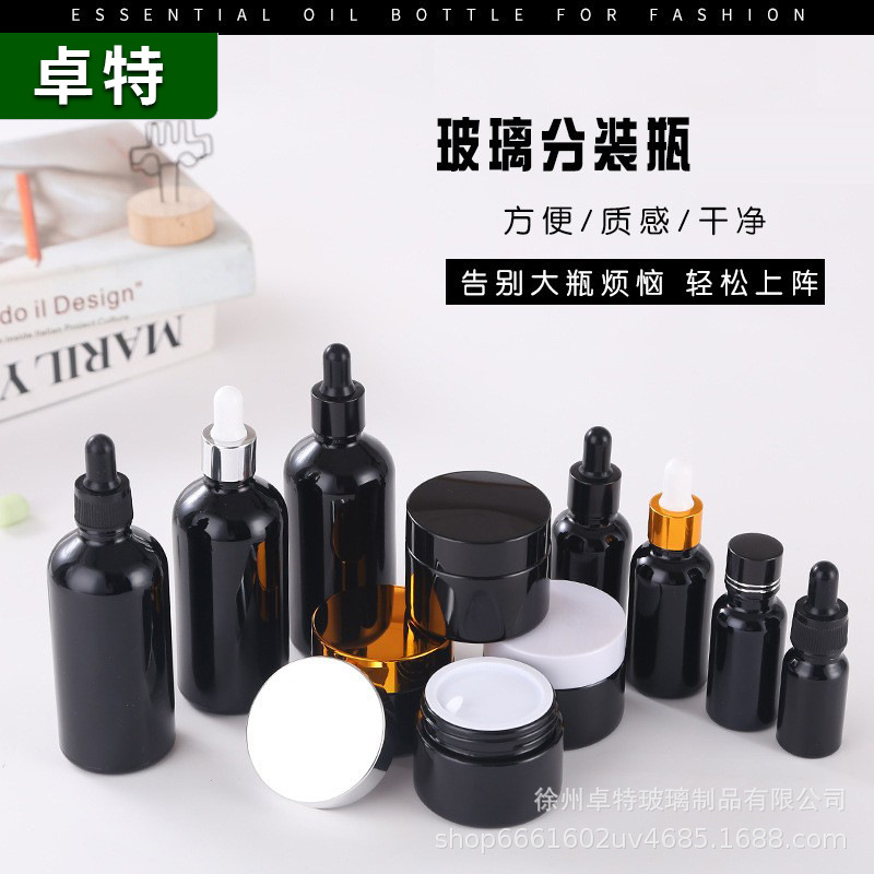 卸売り紫晶瓶l黒精油瓶クリーム瓶バイオレット精油化粧品瓶純黒原料スポイト瓶