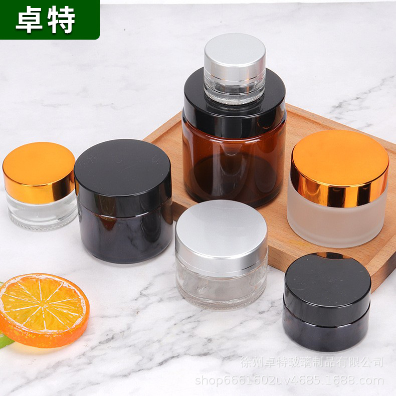 卸売りガラス膏霜瓶化粧品木目蓋サンプル分注多規格蒙砂噴霧乳液瓶マスク缶