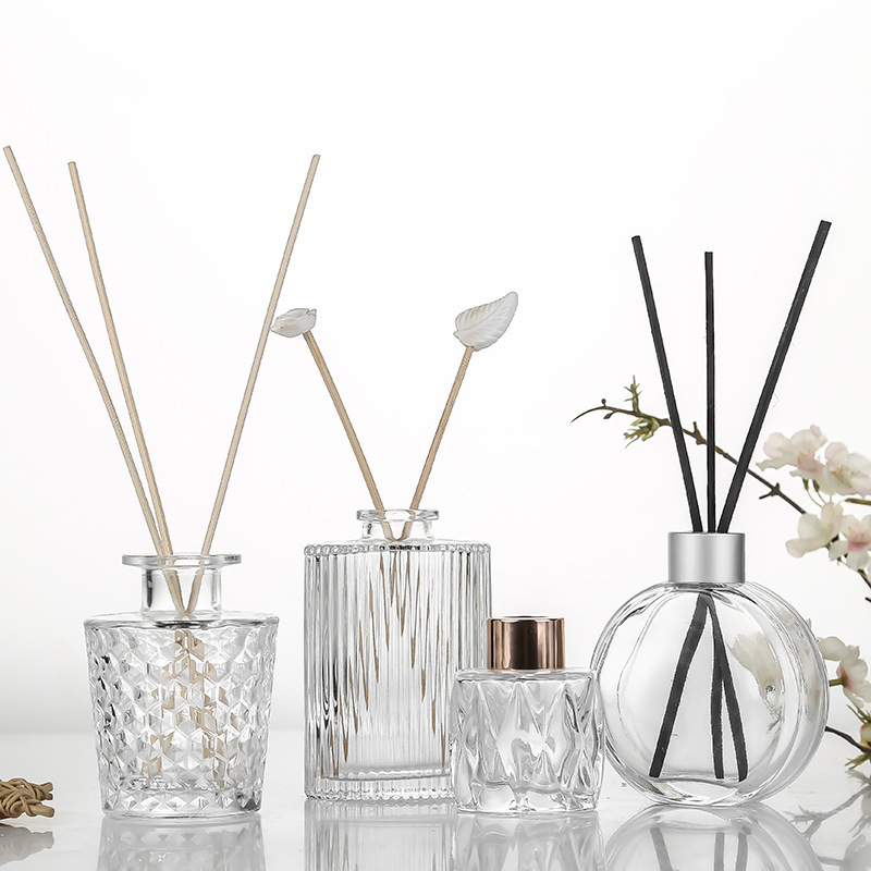 正方形、円形のアロマディフューザーボトル、特殊形状のガラス製、火を使わない、家庭用、ホテル用、空気清浄、消臭、フレグランス