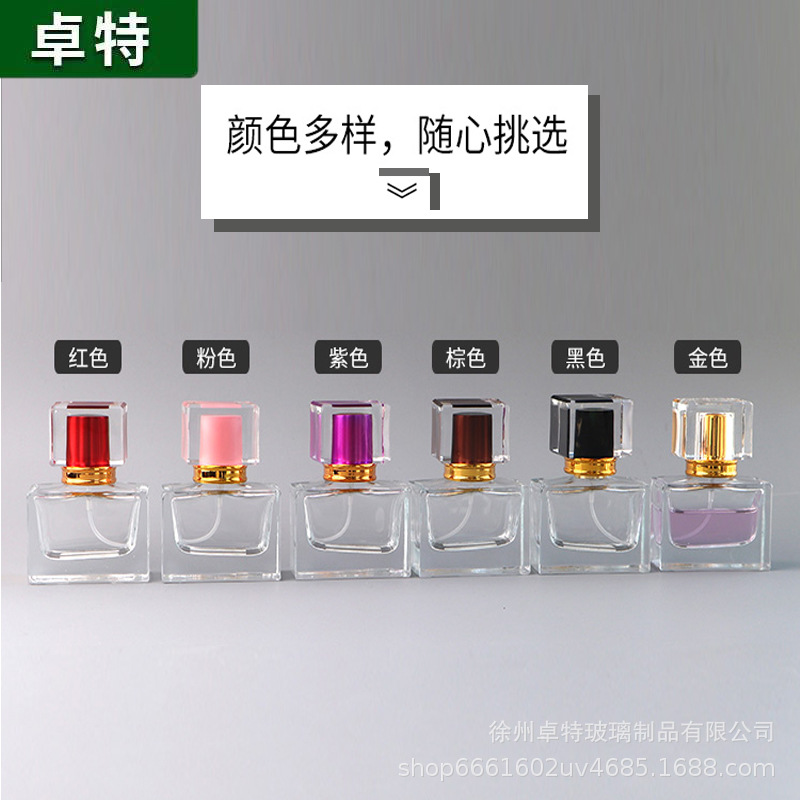 卸売り30ml 50ml角型香水瓶カラーカバースプレー瓶化粧品サンプル分注ガラス包装瓶