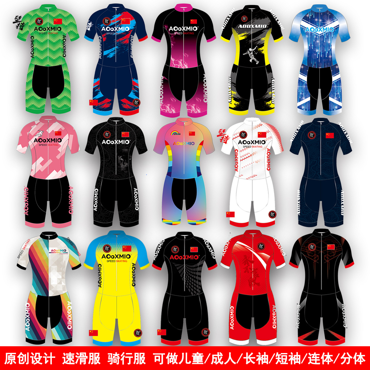 メーカー卸売り男女児童速乾輪滑服成人輪滑速滑バランス車長半袖セットにベルベットをつけた