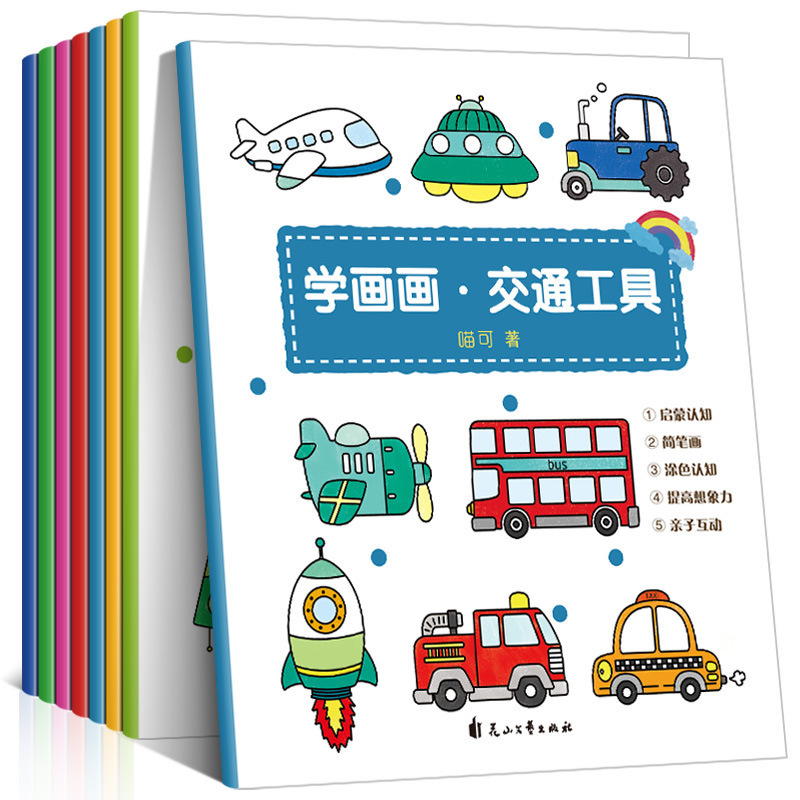 子供の簡単な筆画塗り絵絵本親子インタラクティブ幼児啓蒙学絵落書き塗り絵全8冊卸売り