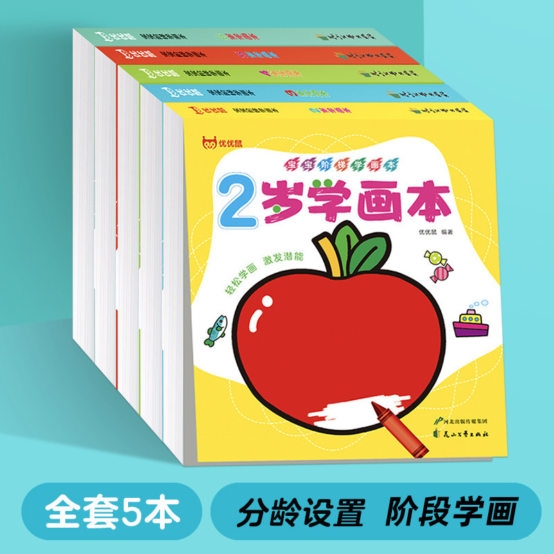 赤ちゃん絵画啓蒙塗り絵全5冊の子供が手を出して脳を動かす段階で絵を描く落書き塗り絵を学ぶ