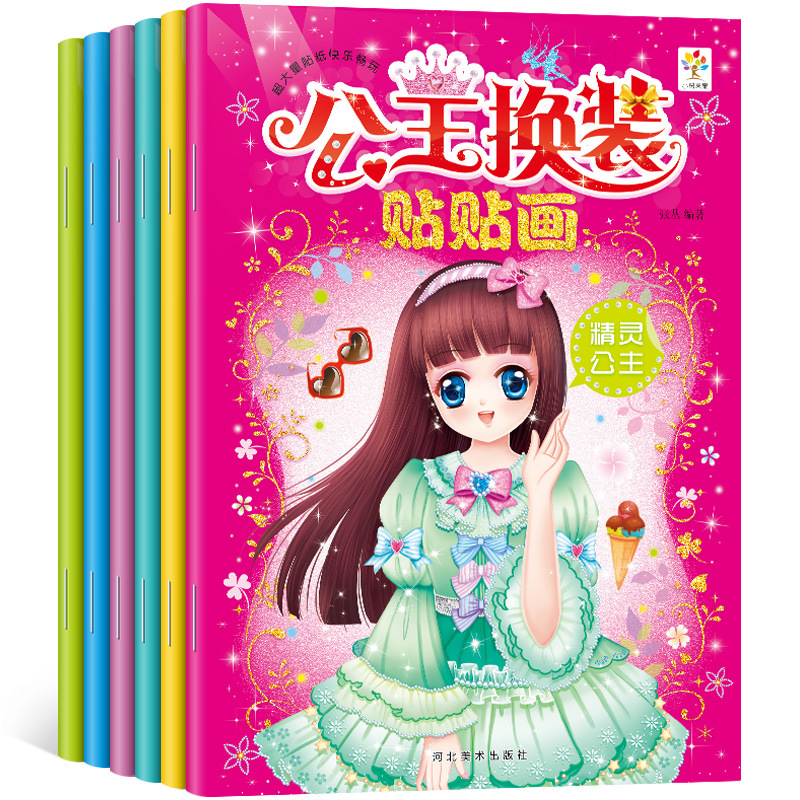 子供の美しいお姫様の着せ替えステッカーの本かわいいファッションの女の子が服を着替えます。