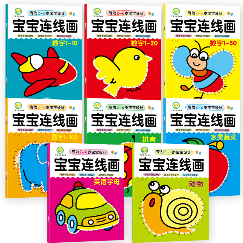 全セットの8冊の赤ちゃんの連線は色を塗って本の子供の連線の本の2-3-4-5-6歳の益智の楽しいピンインを描きます。