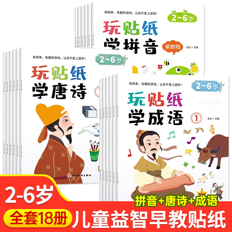 シール学成語学唐詩学ピンイン全18冊児童知育早教シール本