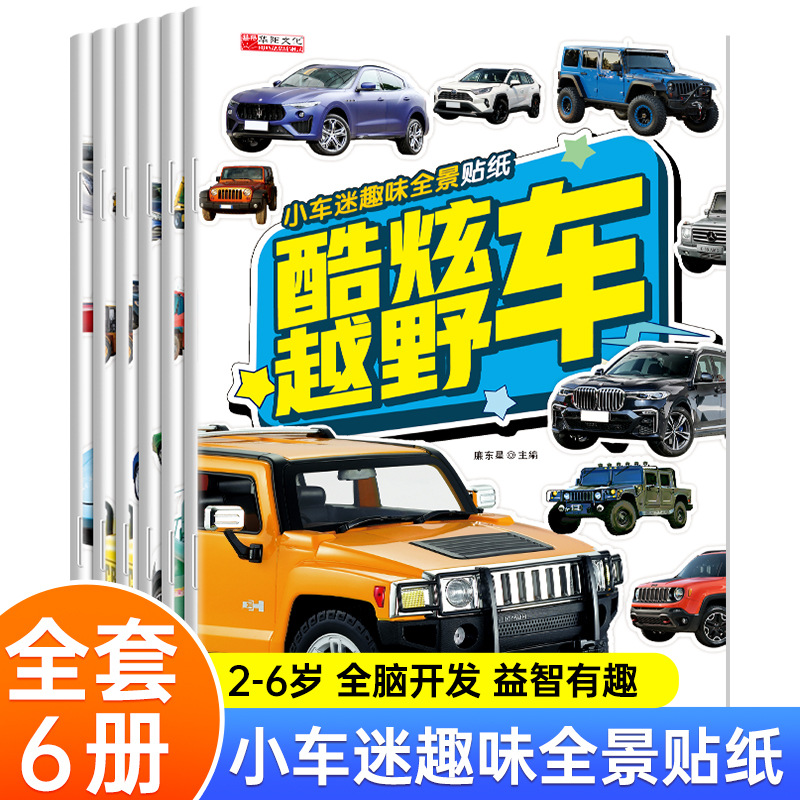 6冊の小型車のファンの趣味のパノラマは紙の本の不思議な工事の車の子供のシールの漫画を貼って絵を貼って集中力の訓練に力を入れます。