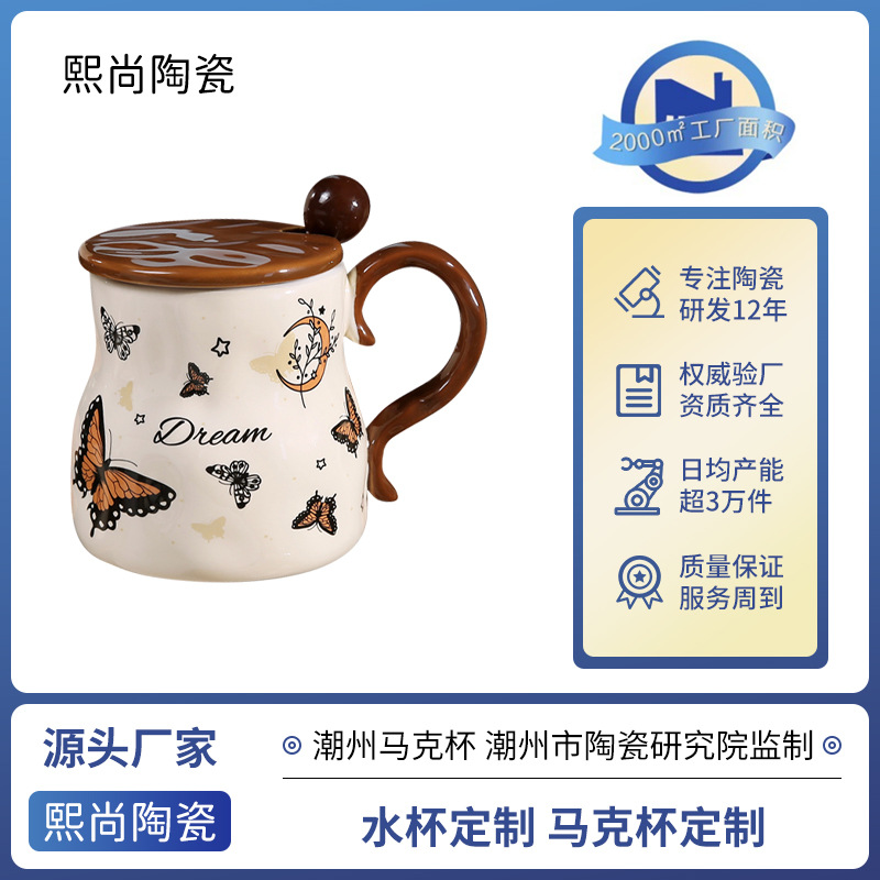 レトロ軽豪華蝶セラミックマグカップ大衆デザイン感飲水カップオフィスコーヒーカップ高級感