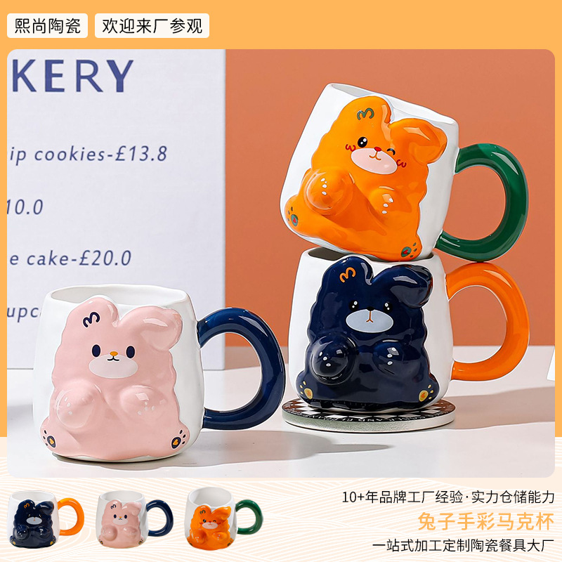 超萌えうさぎマグカップins風高颜値小衆デザイン陶磁器カップルカップ朝食カップ誕生日プレゼント