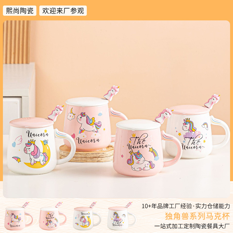 超萌えユニコーンセラミックマグカップ蓋付きスプーンコーヒーかわいいカップカップルクリエイティブ少女プレゼント