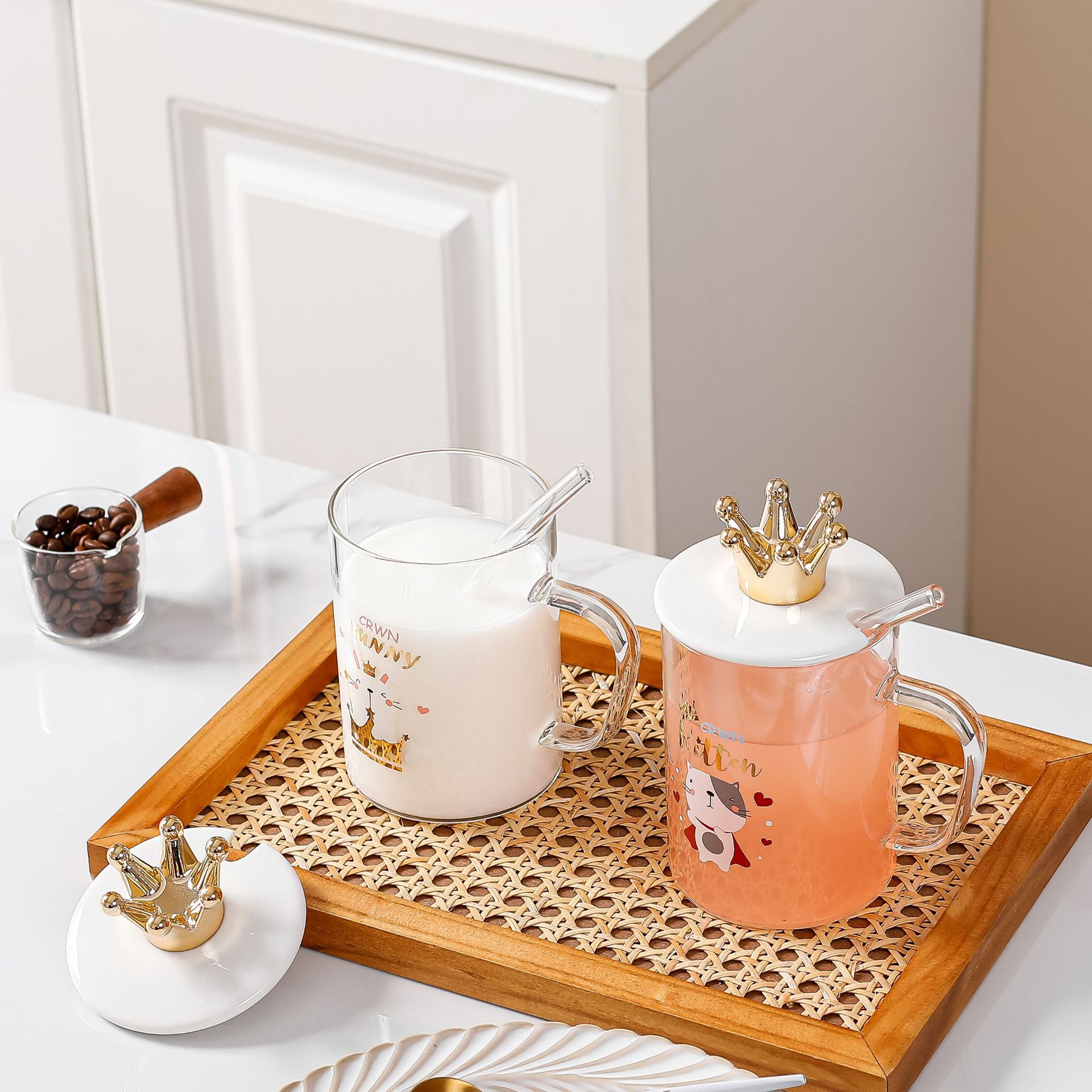 クリエイティブ高颜値ガラスカップクラウンテーマガラスストローミルクカップコーヒーカップ高棚グラスギフト