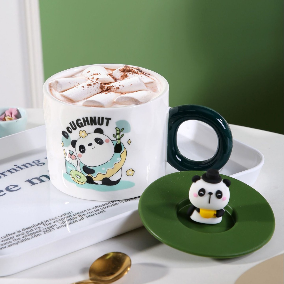 2024新年プレゼント男女子本命年カップルカッププレゼントパンダコップ陶磁器マグカップ蓋付きスプーン