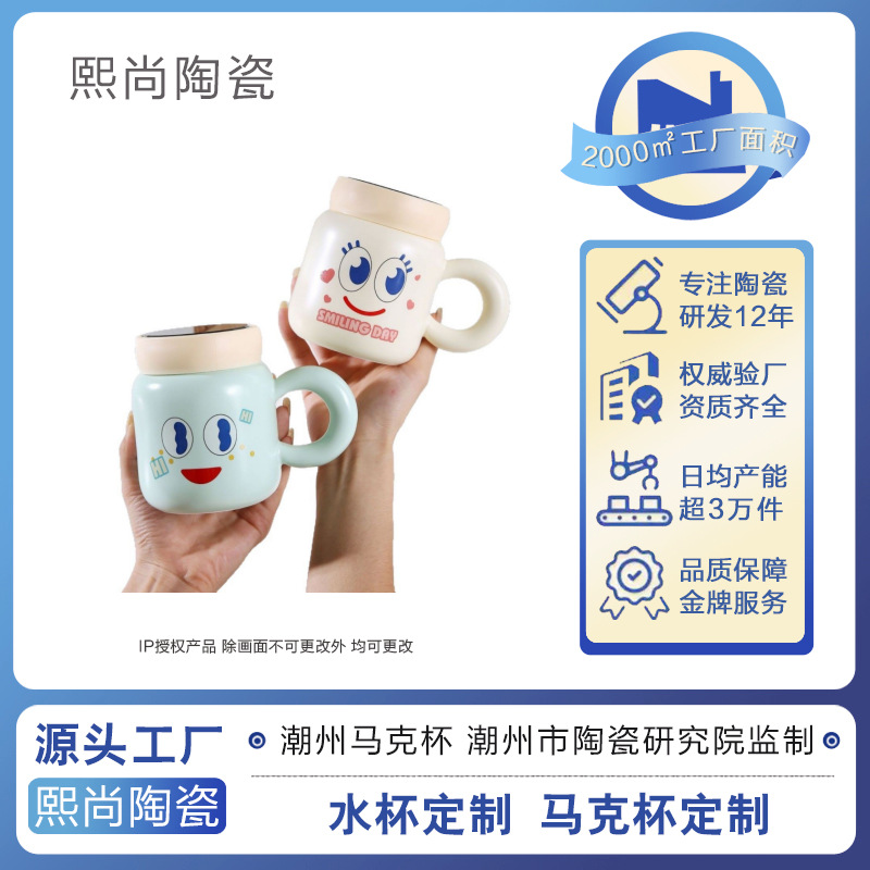 ミラー漫画マグカップ、蓋付き高価値セラミックマグカップ、男性用と女性用のウォーターカップ、ロゴが印刷された卸売のお土産