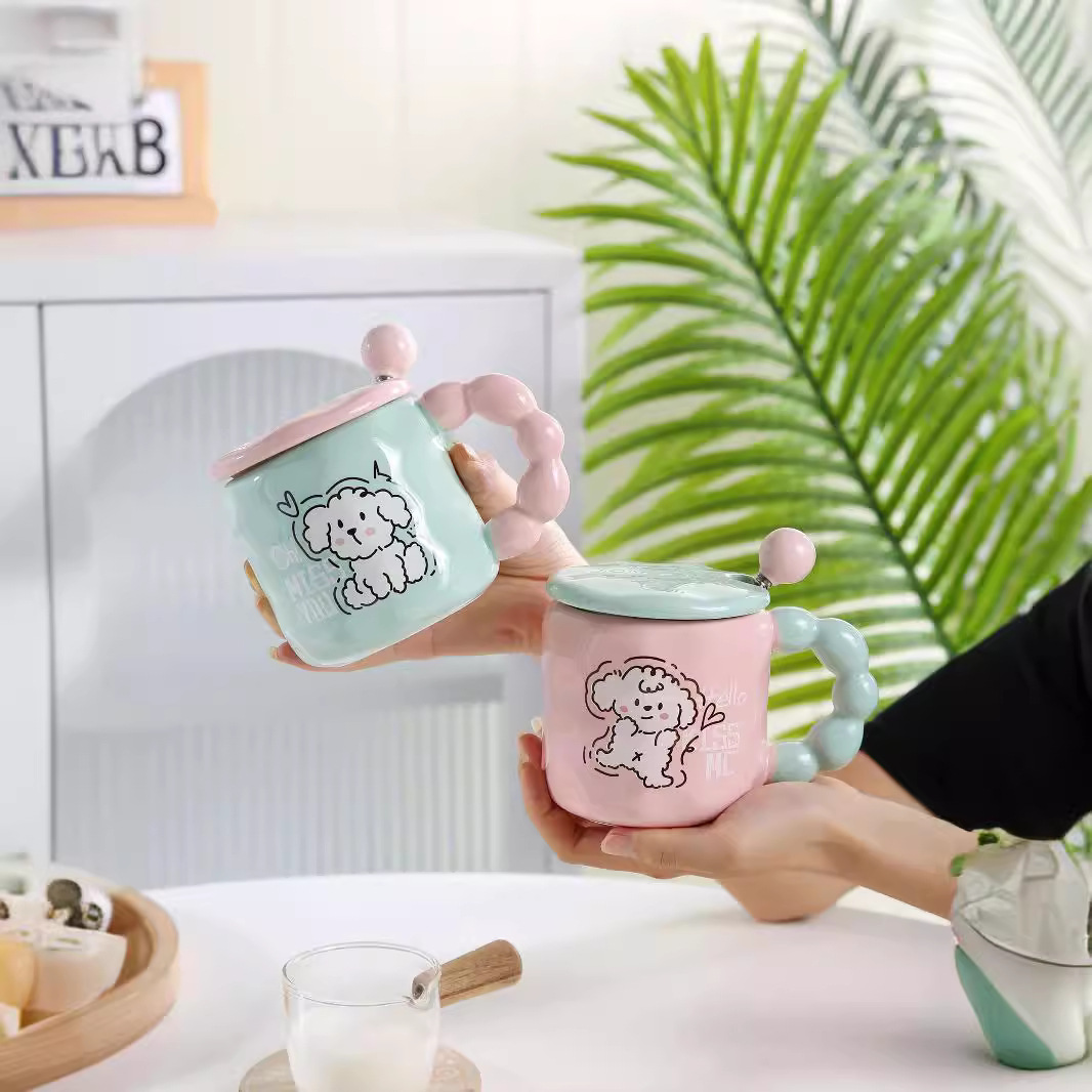漫画かわいい家庭用マグカップカップカップカップカップins高颜値真珠側はバレンタインデープレゼント陶磁器カップを持っている