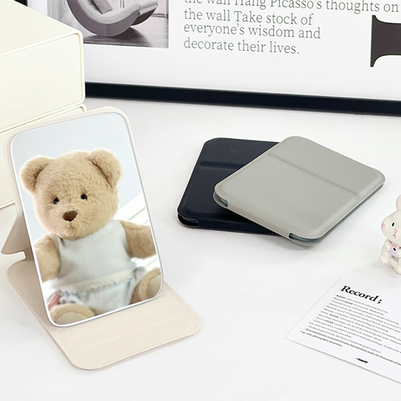 ベアメイクミラーデスクトップポータブル折りたたみミラーインスタ风学生用ミニミラー高级感