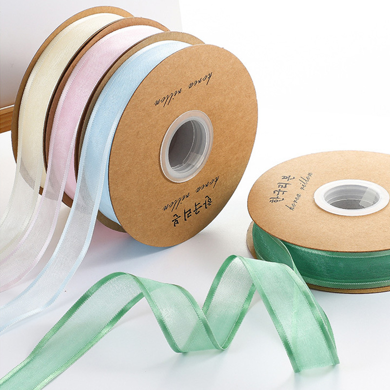 昌易は2.5cmの韓国式の広い縁のガーゼを卸売りして花屋の花束のケーキの箱の装飾の雪の糸のリボンのプレゼントの箱を持ちます。