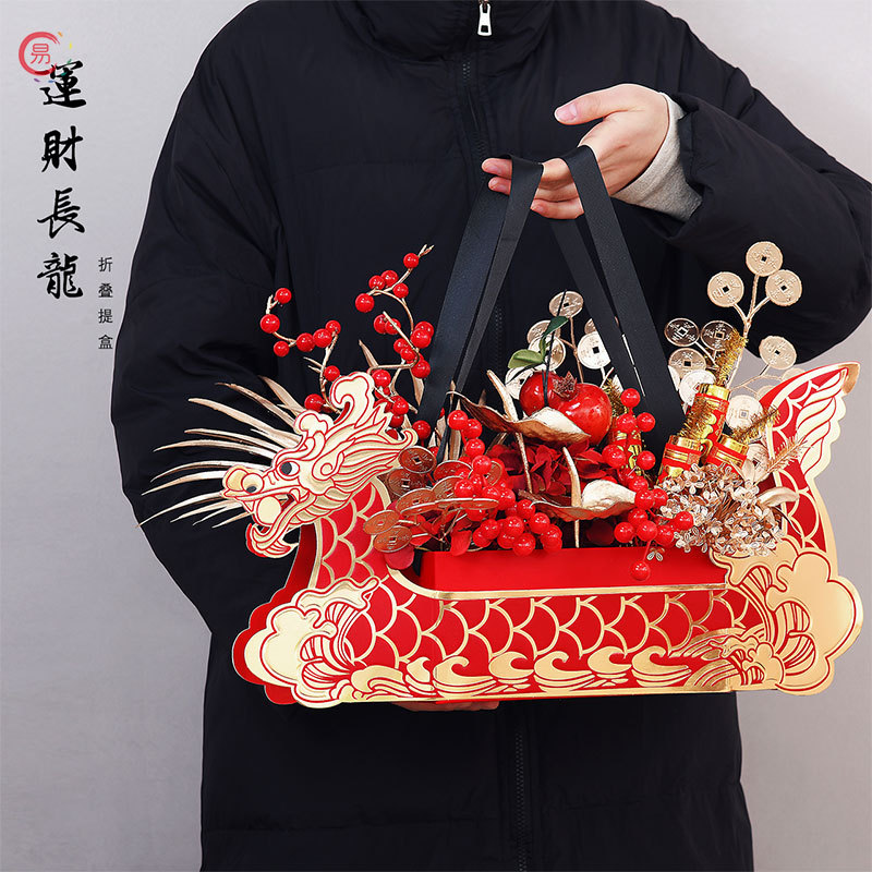 運財長龍折り畳み手提げ箱お祝い開業年夜花花束生け花箱冬青花花芸礼箱