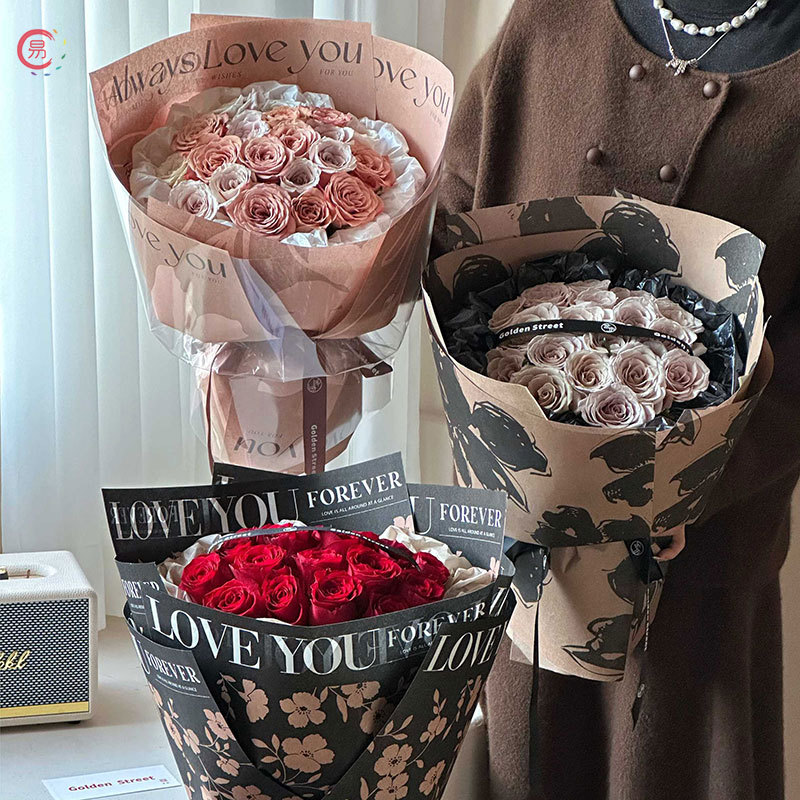 昌易の花の雰囲気の紙のバレンタインデーのバラの花束は包装紙の防水を厚くして花を揉みます。