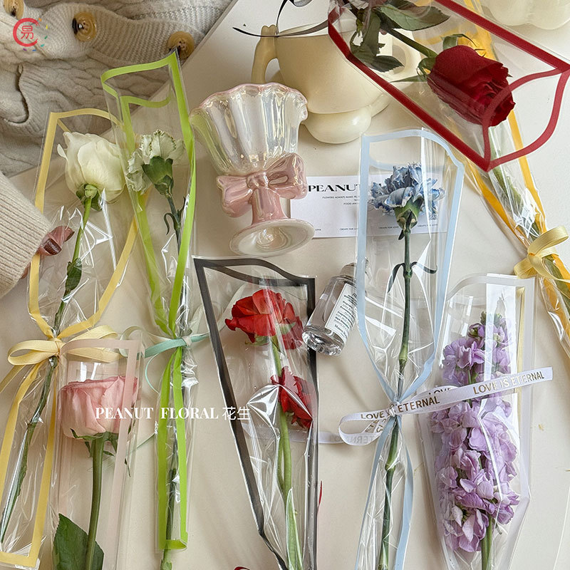 カラフルな枠のシングルバッグバレンタインデーの花バラ包装透明防水花束袋diy花芸バッグ花袋