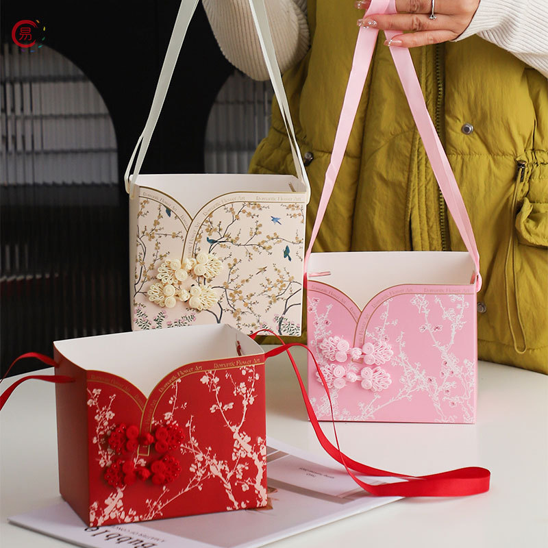 華韻中国式花箱バラの花のハンドバッグ花箱国潮盤ボタン花束生け花ギフトボックス手作りdiy花