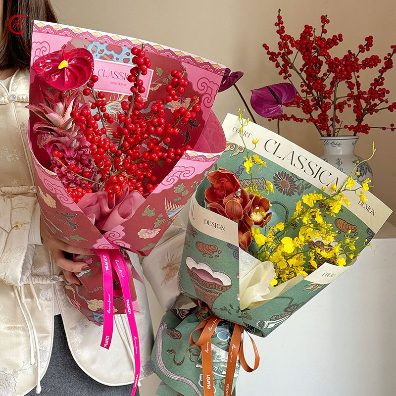 宮廷風中国式国風冬若い夜花花包装紙レトロな花束包み紙手作りdiy花芸