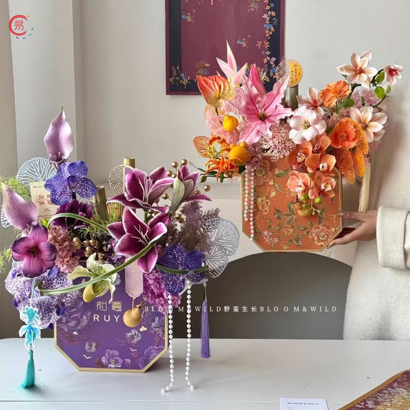 新中国風八角箱福桶年夜花花束生け花ギフトボックス国風花箱手作りdiy花芸