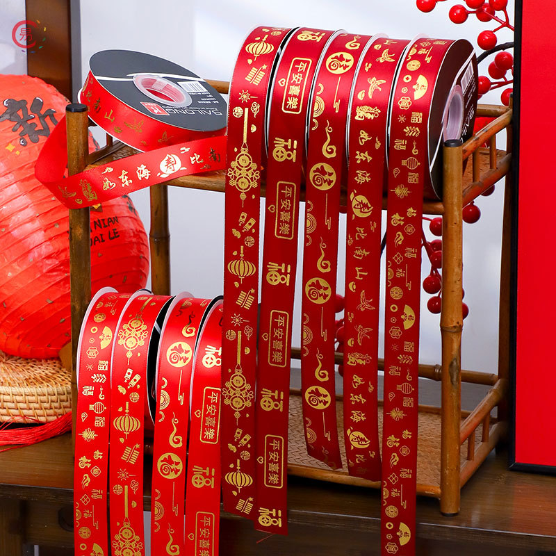 昌易卸売り新年箔押しポリエステルリボン花プレゼントお祝い包装リボン手作りdiy花芸包花