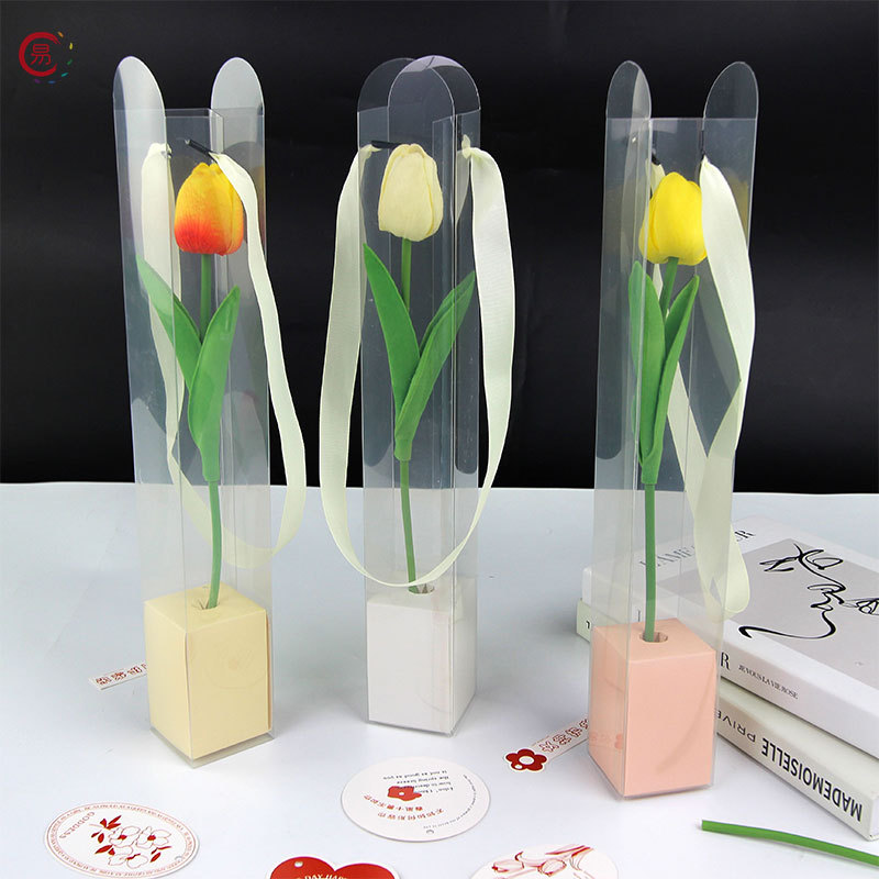 小さいサイズの透明な単一の箱のバラの花の花束の包装の手はpvc生け花のギフトボックスdiyの花芸を持ちます。