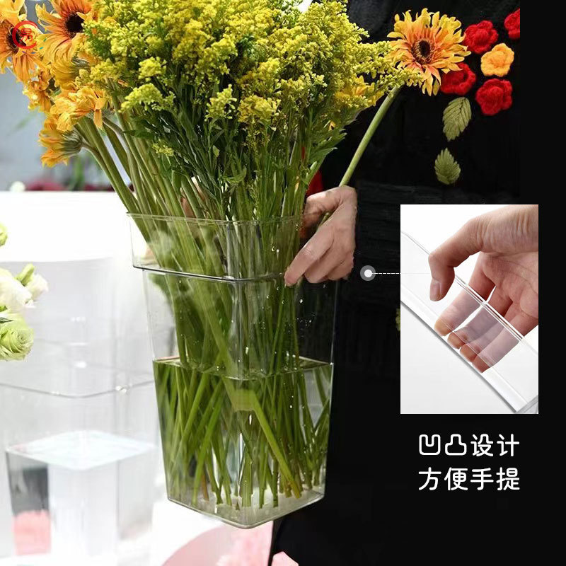 オランダのバケツの透明な花は花のバケツの花瓶のプラスチックの生け花のバケツのバラの花束を育てます。