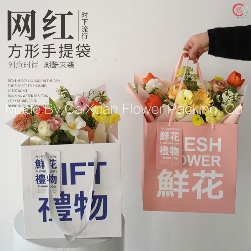 昌易のネットの赤い花束の四角形の手提げ袋のバレンタインデーのバラの花の包装のギフトボックスの生け花の袋の花の材料