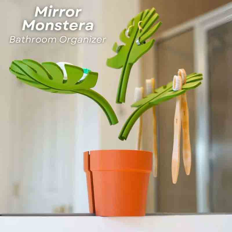 国境を越えた新しいミラーMonstera-Bathroomオーガナイザー鏡面亀背竹歯ブラシホルダー