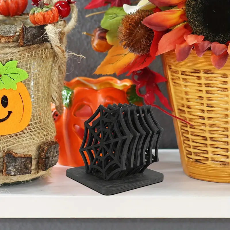Spider coaster蜘蛛の巣透かし彫り木製コースターレストランキッチン木製パーマ断熱マット