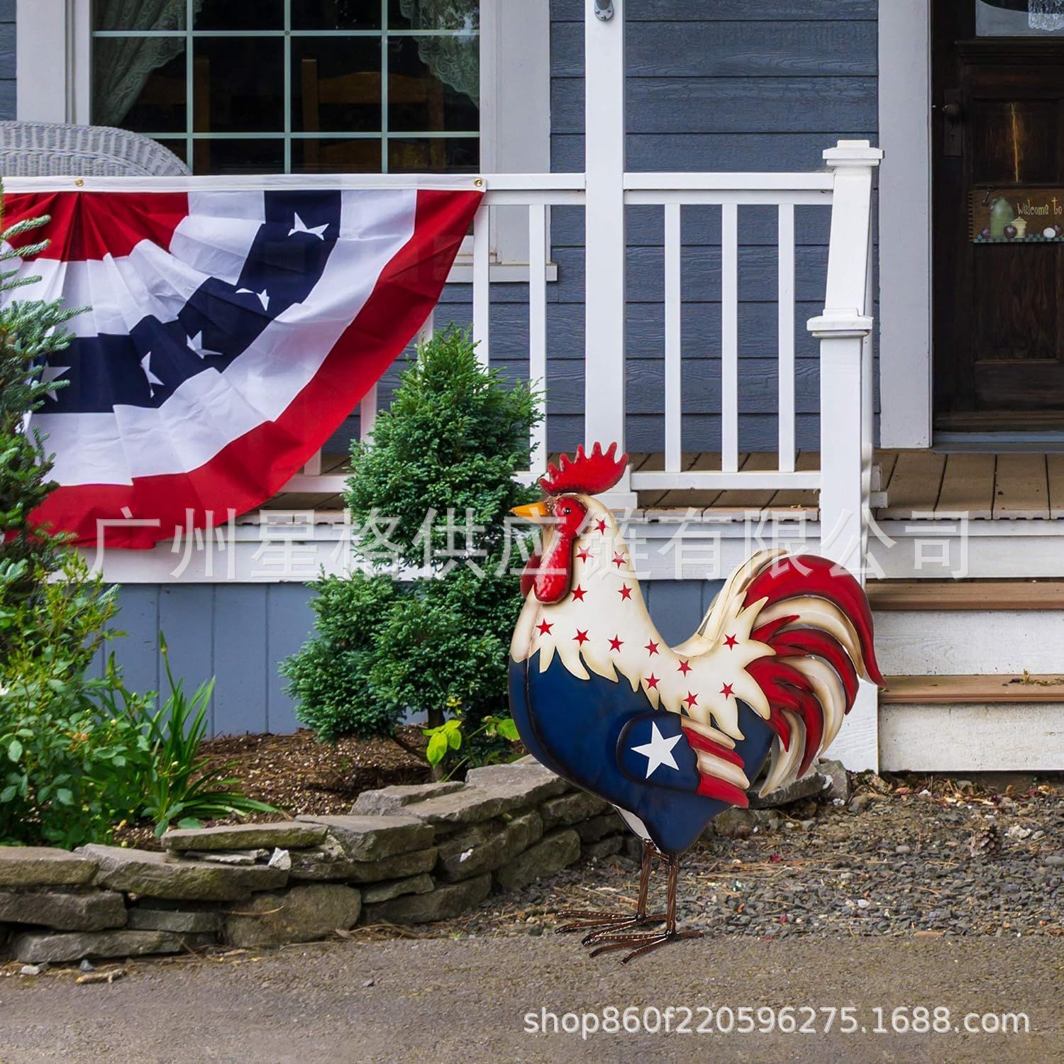 メタルパトリオティックrooster statue独立日雄鶏屋外平面装飾地挿し置物