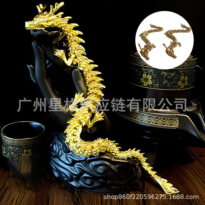 ゴールドドラゴンウィズムーヴブルジョインツ可动関节金龍金属竜置物ホーム