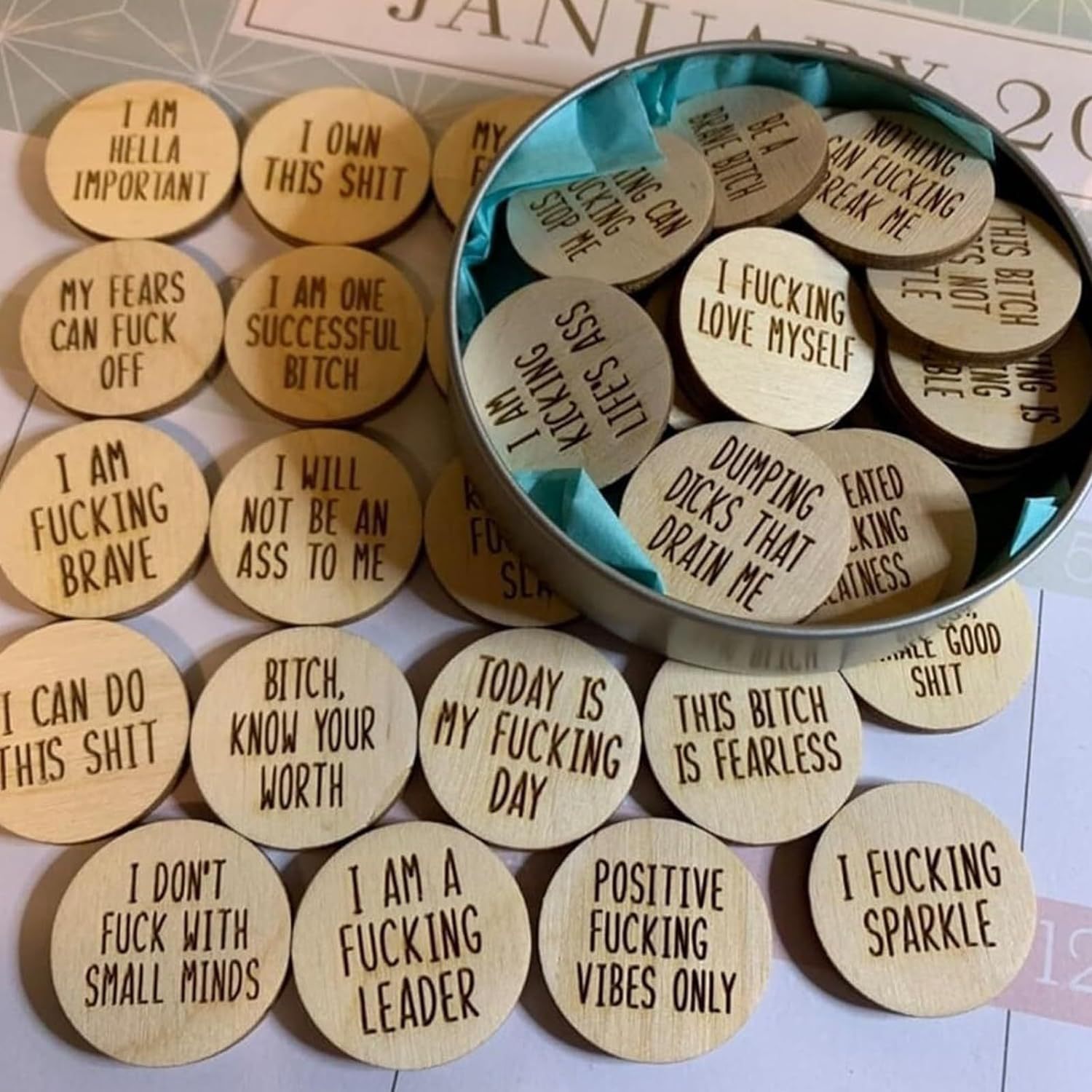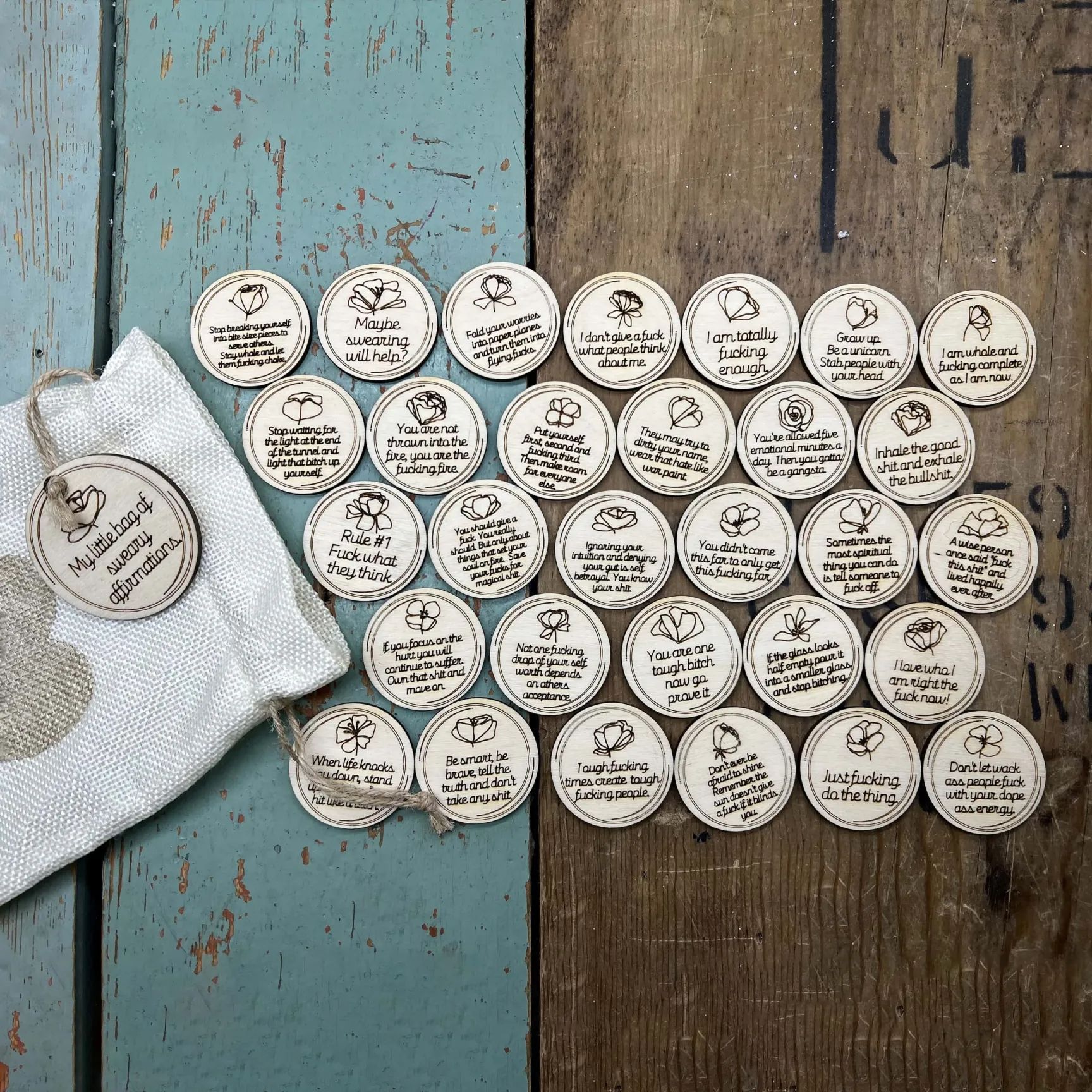 木製の肯定的な誓いの円形の木製の札のトークンのマイリトルバッグのためのswear affirmations