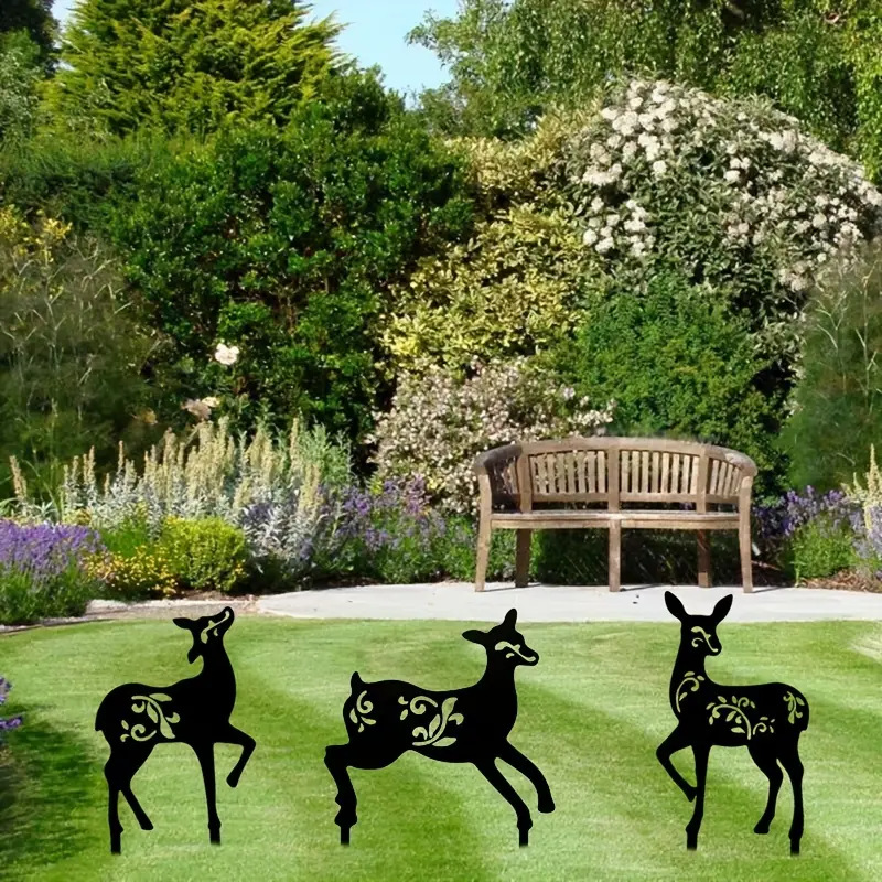 Deerガーデンステーキクリスマス鹿三点セットアウトドアガーデニング地挿しシルエットメタルシルエットロゴ