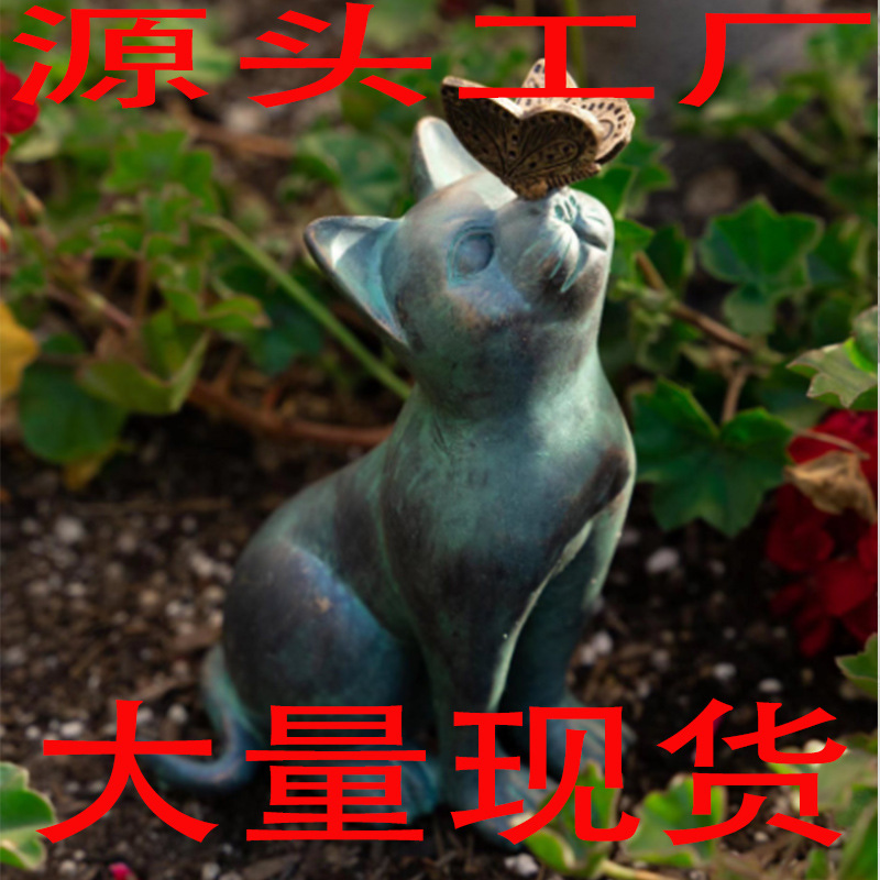 国境を越えた新しい蝶付き好奇心猫室内屋外小像花園樹脂置物樹脂工芸品