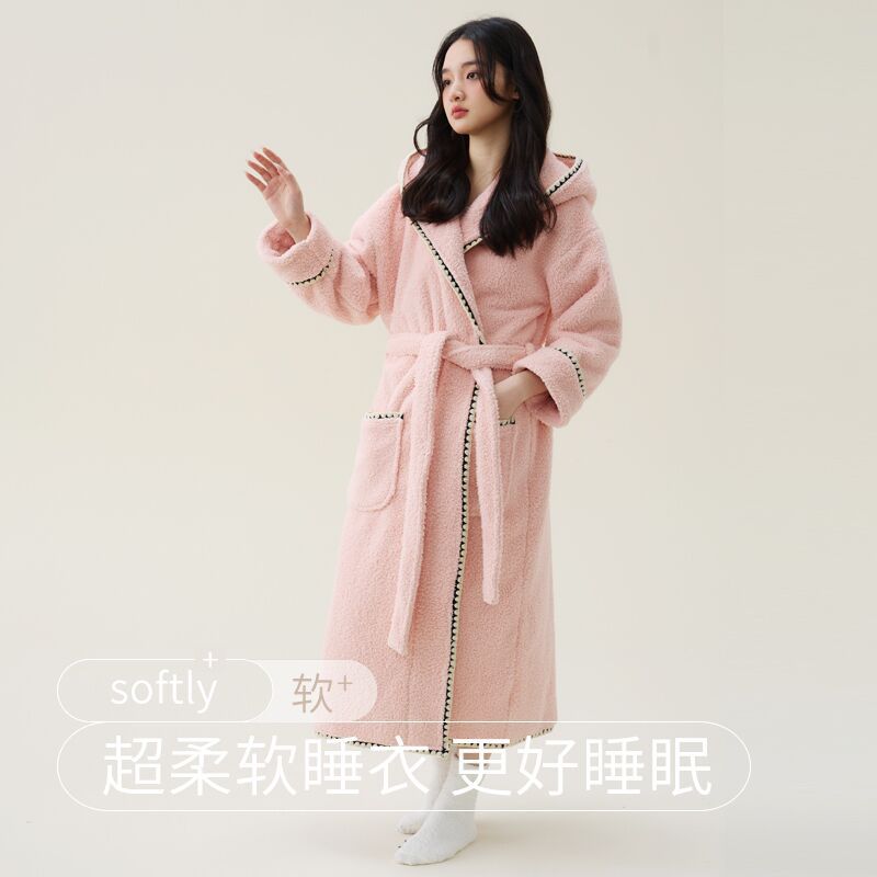 現物秋冬の新型コーラルベルベットは美しいベルベットの男女の寝衣を厚くしてバスローブのカップルのパジャマを長くしている