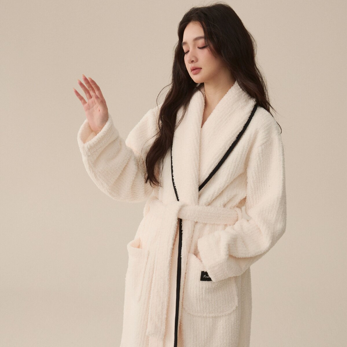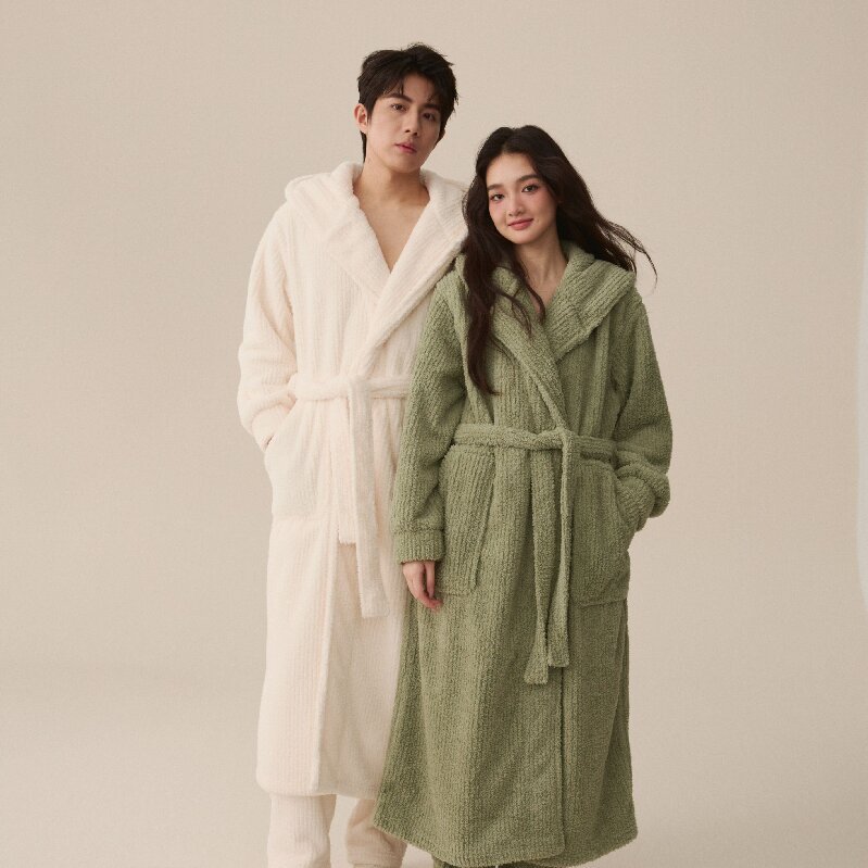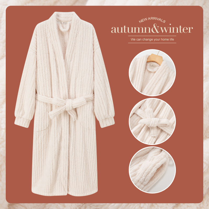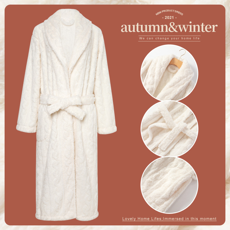 現物秋冬ジャカードコーラルパイル厚手暖かいパイル男女パジャマ厚手バスローブカップルパジャマ