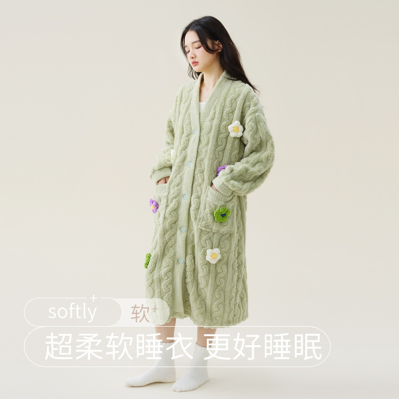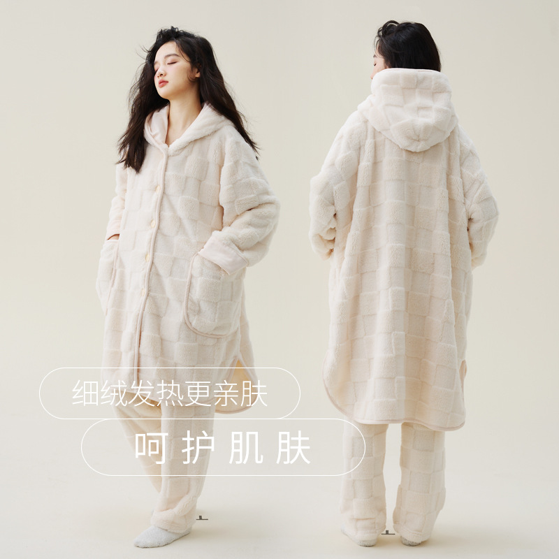 現物のサンゴの絨毯の寝衣の女性の秋冬の暖かい絨毯の厚いプラスの絨毯の浴衣の新型の女性のパジャマの長い服の冬