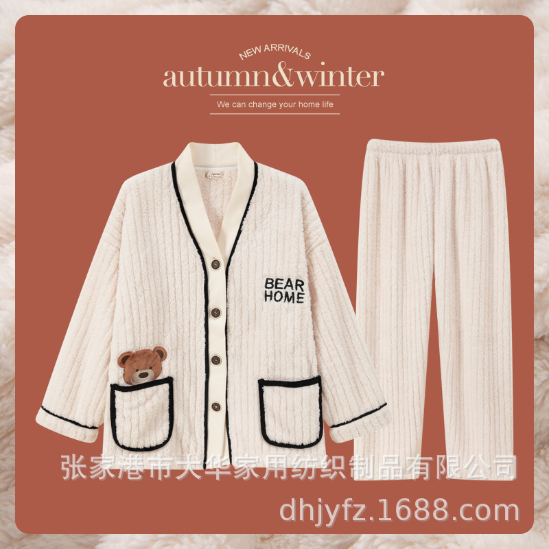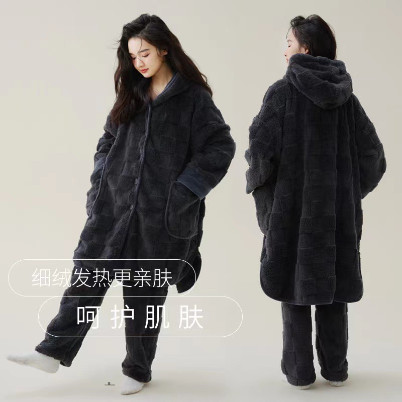 現物秋冬の新型サンゴの絨毯は厚い寝衣の女性のパジャマのカップルの部屋の服のスーツを厚くして冬を着ることができます。