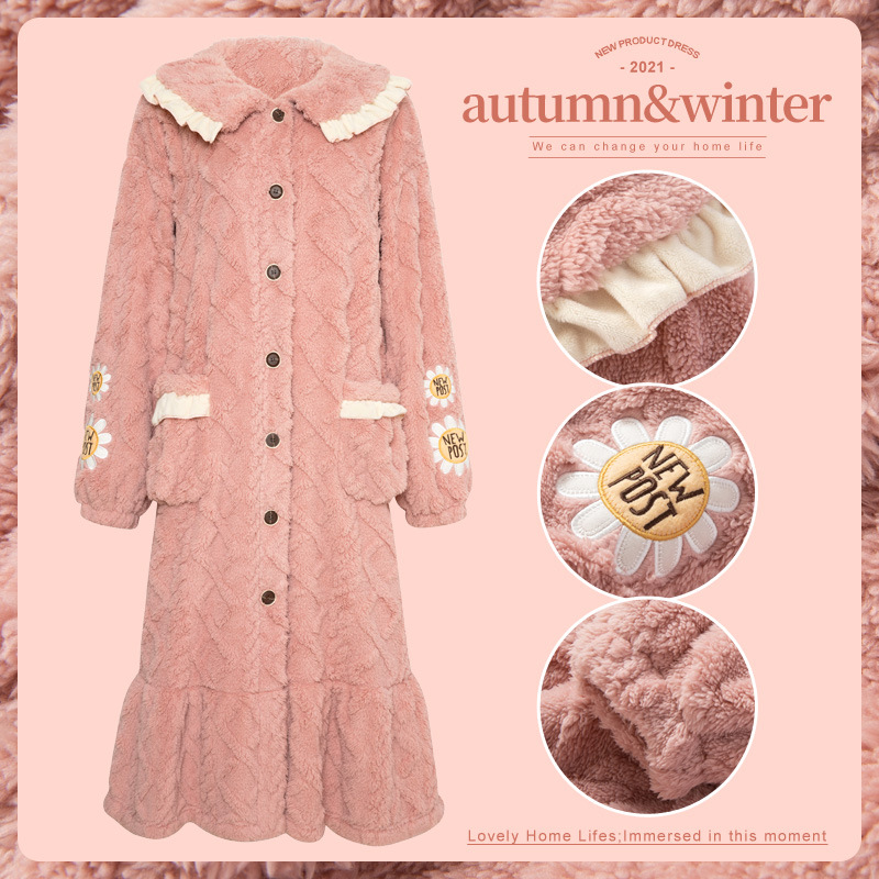 寝衣女秋冬コーラルパジャマ2021新型フランネル甘い学生延長厚バスローブホームウェア