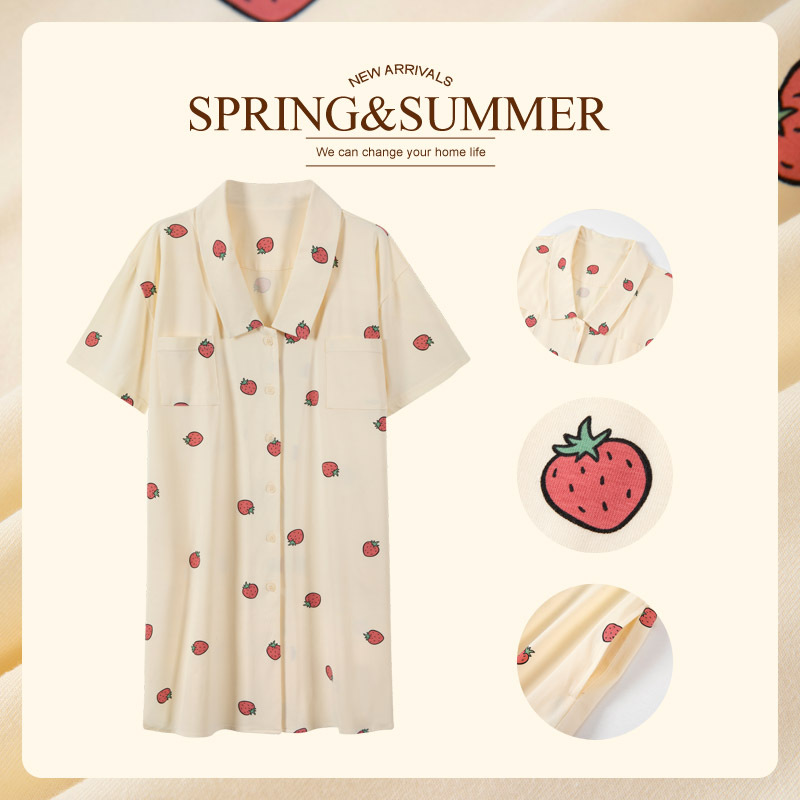 現物の柔らかい綿の寝スカートの女性の春と夏の秋の半袖のパジャマのゆったりしているプリントの純綿のカーディガンの家の服の長いスカート