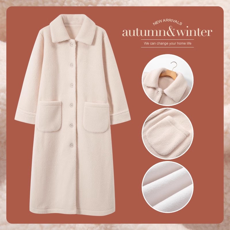 現物の寝衣さんは秋冬に2024年に新型のベルベットを厚くしたサンゴのベルベットのバスローブが子羊のベルベットのコートを真似ている