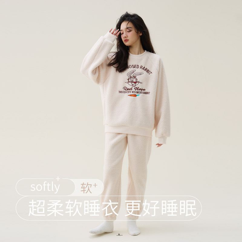 現物パジャマの女性は秋冬にベルベットのベルベットのスーツを厚くして2023年の新しい冬に家の服を着ることができる