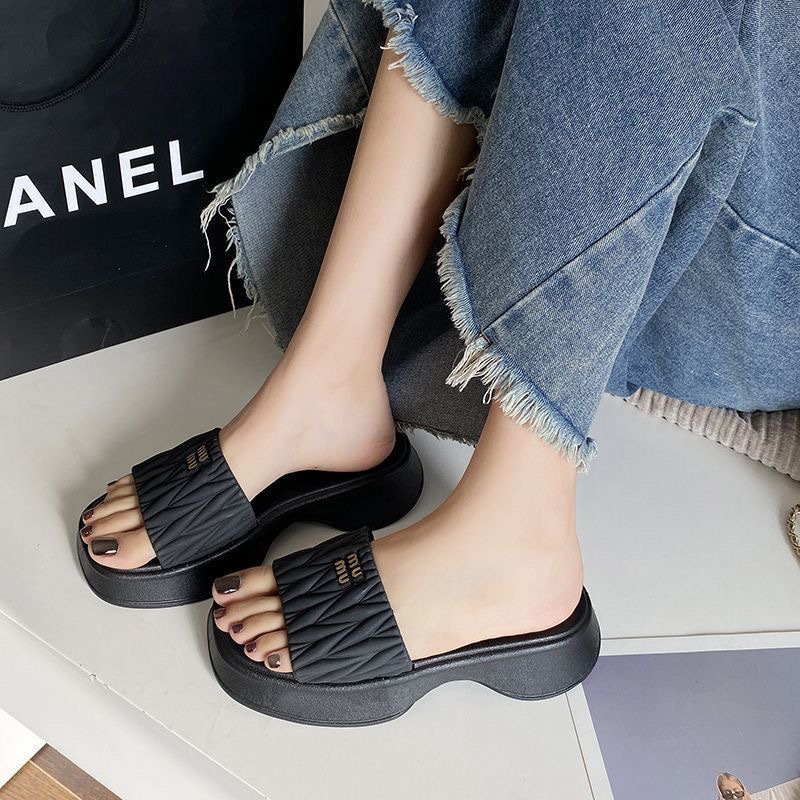 小香風バービー粉スリッパ女性夏の外着2025新高級感厚い底が高くなった超火ビーチサンダル