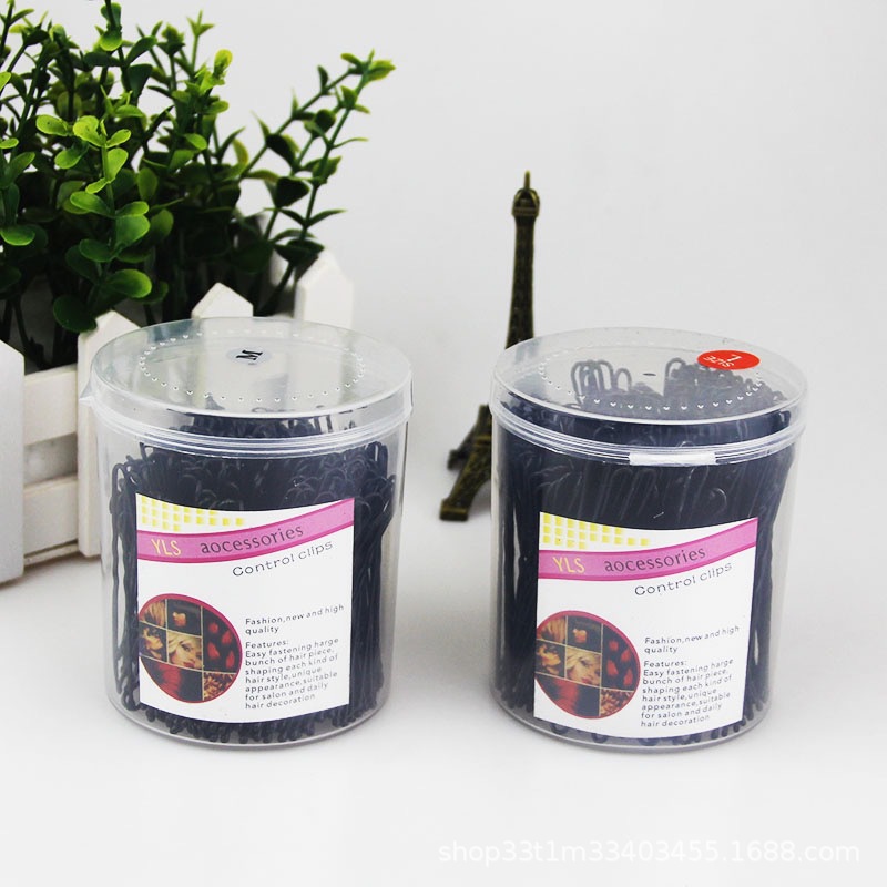 U型ヘアピン黒色太く500g 1斤の大包装ヘアピン晩装造形一字波紋平織りヘアピン