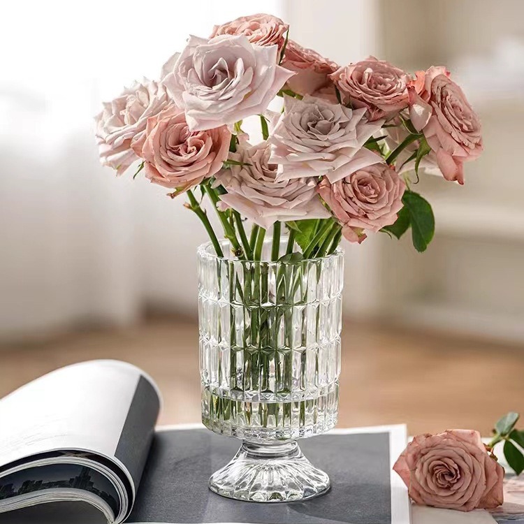 軽豪華ファッションシンプルなレリーフ高脚ガラス花瓶高級感水培水養生花生け花客間置物
